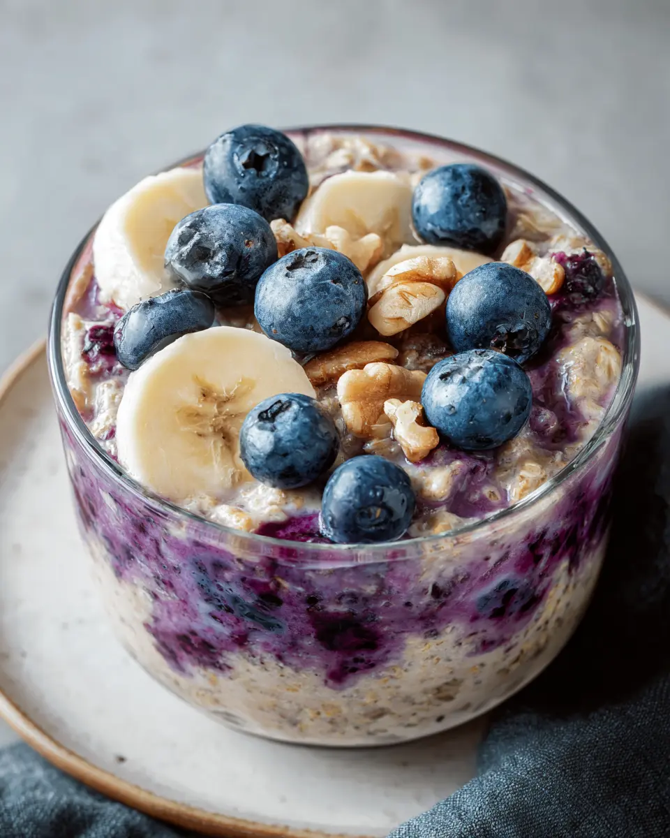 In summary, blueberry overnight oatmeal is the perfect solution for busy mornings. This simple, nutrient-rich meal not only packs a fiber punch but can also be easily adapted to your taste. Prepare it once and enjoy a week of effortless breakfasts. Give it a try and savor the convenience!