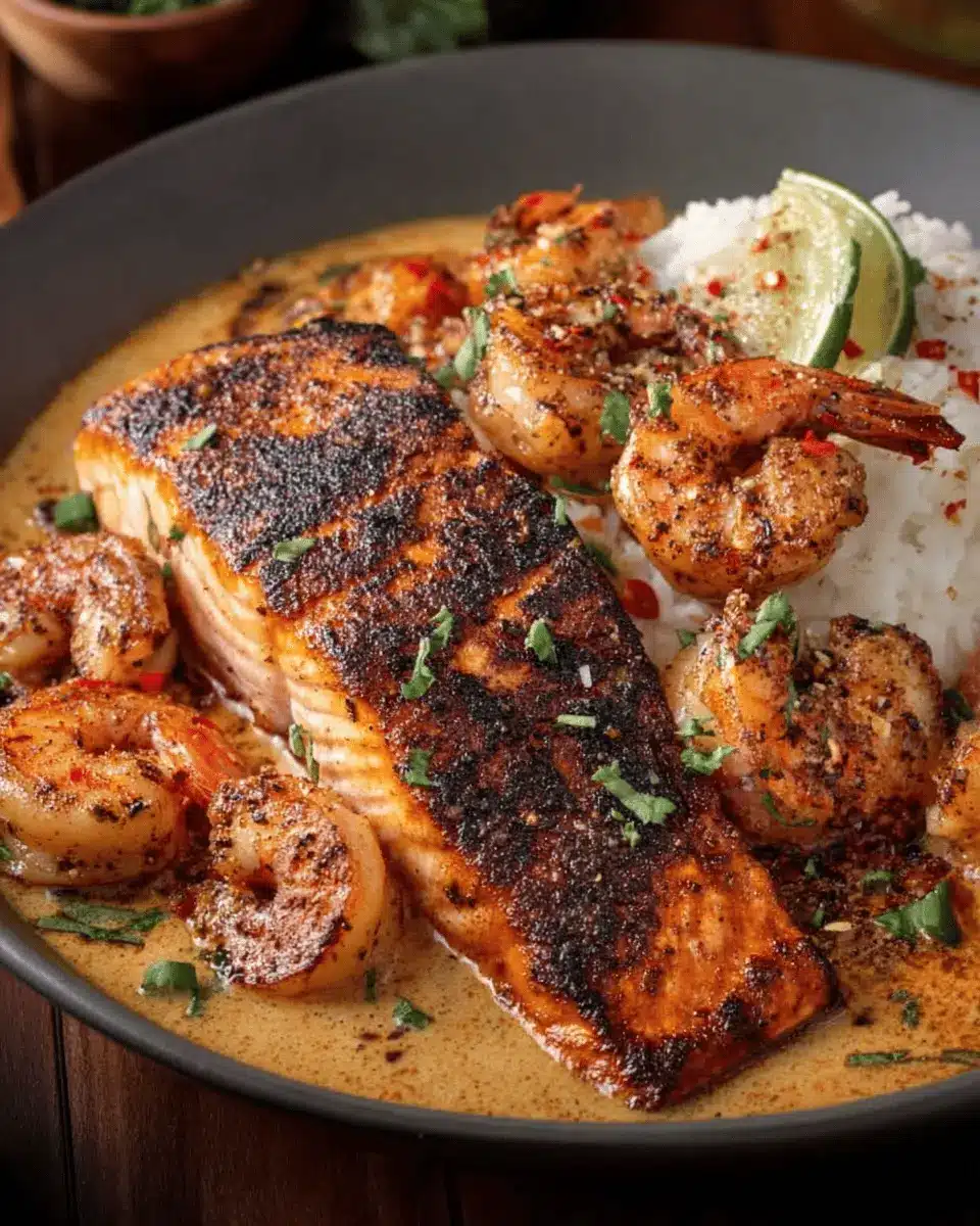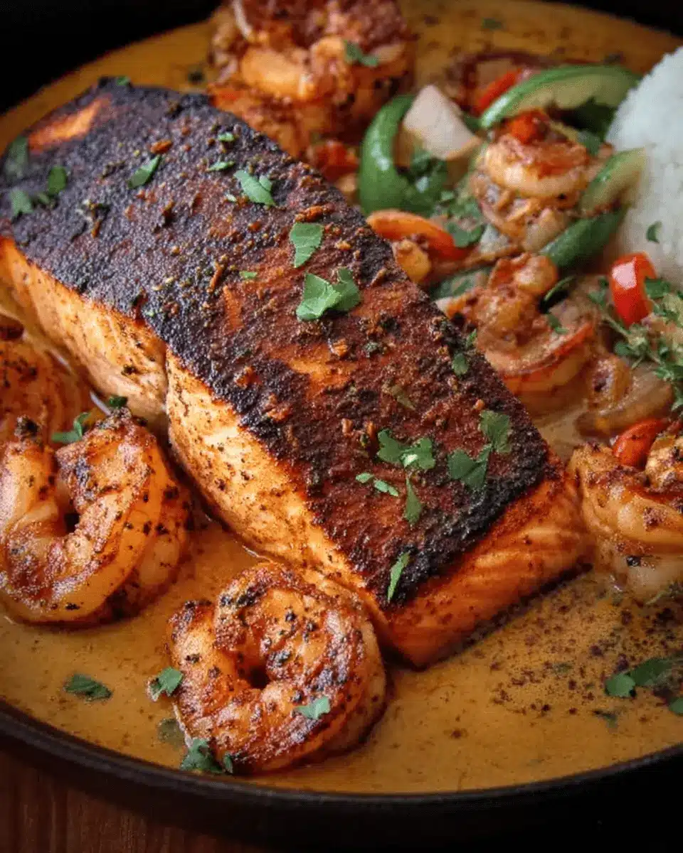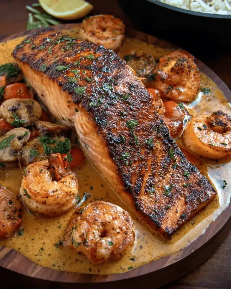 Presentation matters! To make your Cajun Salmon and Shrimp dish truly pop, sprinkle freshly chopped parsley over the top. You can also add a wedge of lemon on the side to give a refreshing zing when squeezed over the seafood. For an added touch, consider drizzling a little extra sauce around the plate before serving. These small details enhance the visual appeal and make for a stunning dinner that impresses both family and friends.