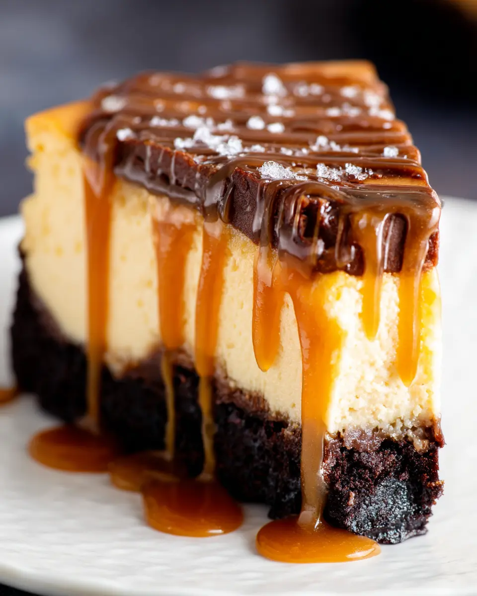 In summary, this caramel brownie cheesecake combines the richness of brownies with the creaminess of cheesecake and a delightful salted caramel topping. It's a dessert that will impress any guest and leave lasting memories. Serve it chilled for the best experience—indulge in a slice today!