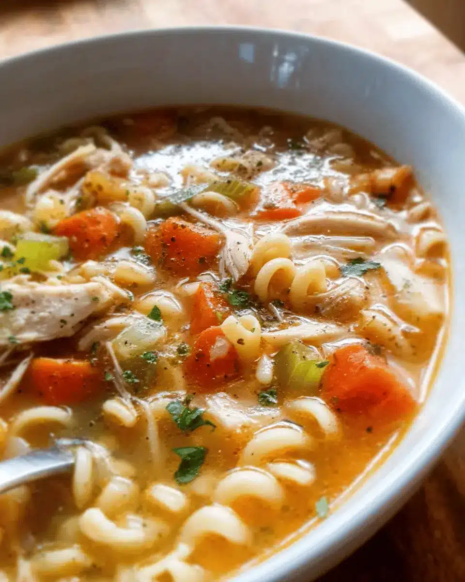 Looking for a meatless option? You can easily make a vegetarian-friendly adaptation of this comforting dish. Replace the chicken with hearty vegetables like zucchini, mushrooms, and sweet potatoes. Opt for vegetable broth instead of chicken stock, and add chickpeas or lentils for a protein boost. This way, you still get that cozy soup experience while accommodating different dietary preferences. Feel free to explore other fresh veggies to personalize your flavor profile—the possibilities are endless!