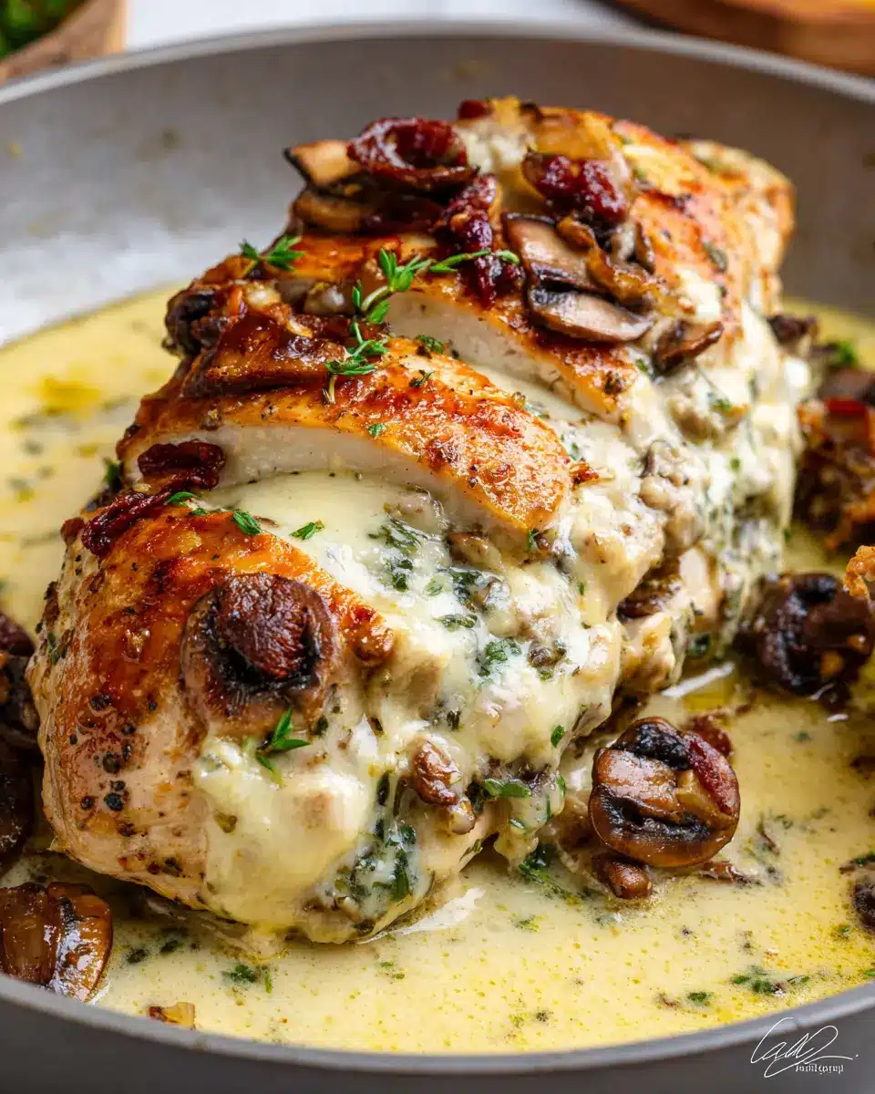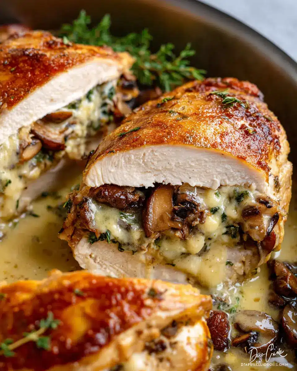 Cheesy Garlic Butter Mushroom Stuffed Chicken