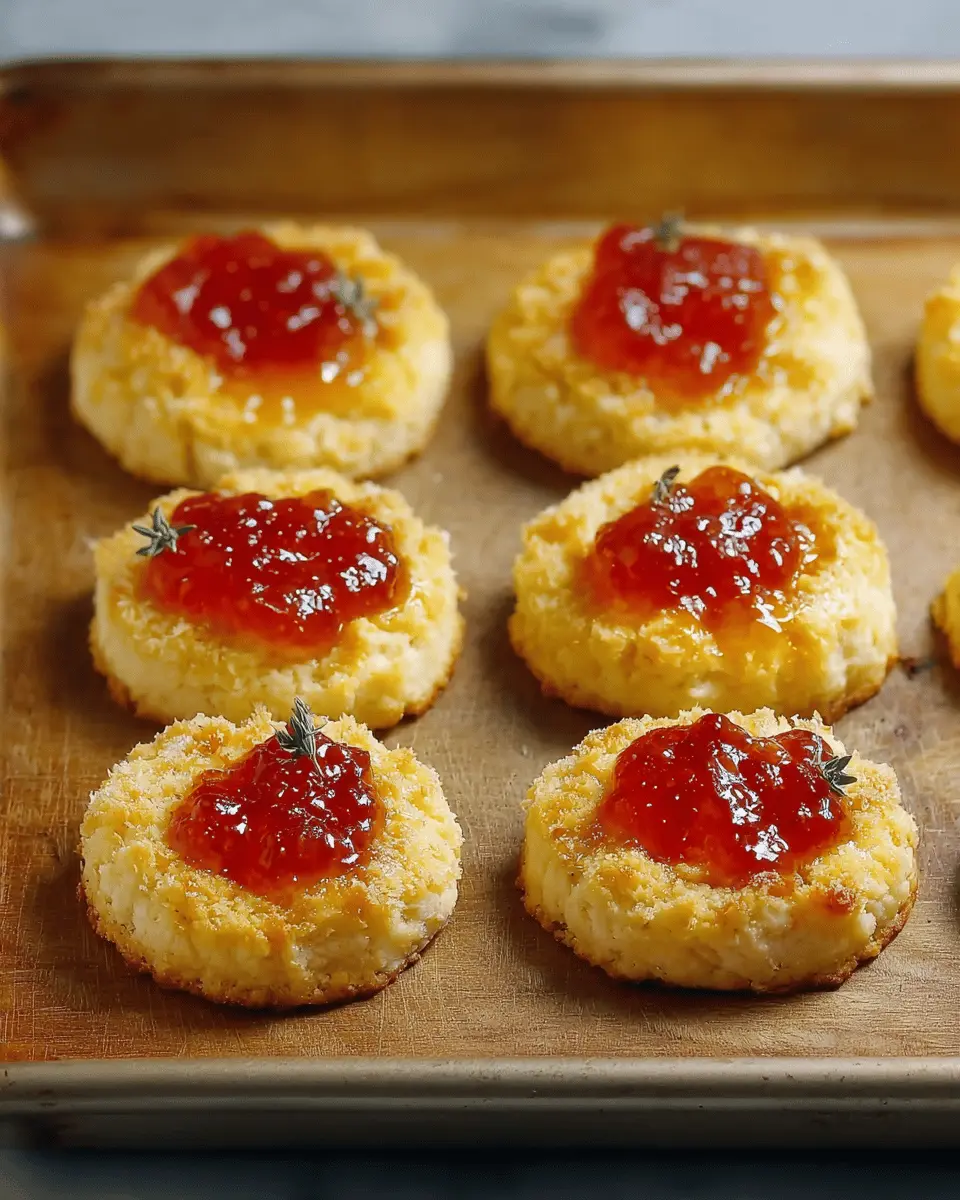In conclusion, Cheesy Thumbprint Appetizers are not just a feast for the eyes but also a delightful treat that balances savory richness with a hint of sweetness from the hot pepper jelly. These easy-to-make bites will surely elevate your next gathering and leave your guests asking for the recipe.