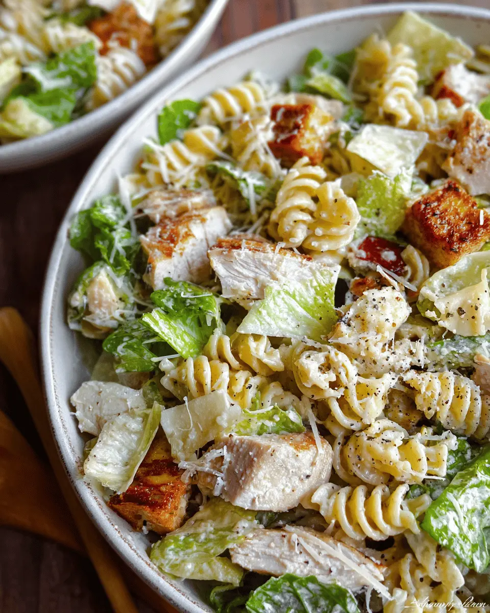 Your Chicken Caesar Pasta Salad is ready to shine! You can serve it immediately for a fresh taste or refrigerate it in an airtight container for later—this salad keeps well for a day or two in the fridge. Just remember, the longer it sits, the more the pasta will absorb the dressing. Enjoy this perfect blend of flavors and textures whether it’s a quick weeknight dinner or part of a weekend feast!