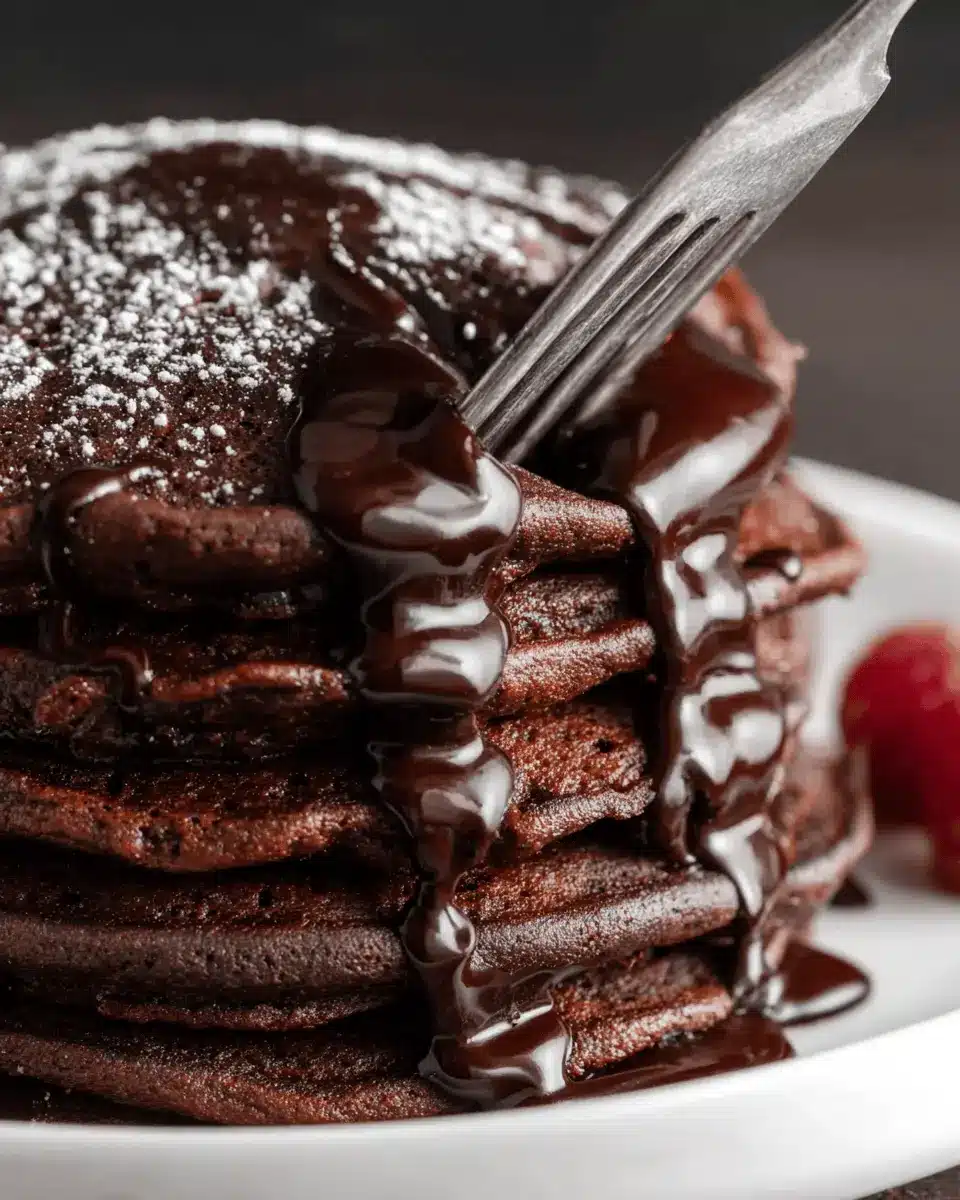 Indulging in your homemade chocolate pancakes is a delightful experience! Picture this: fluffy pancakes drizzled with warm chocolate ganache, maybe topped with fresh berries or a sprinkle of powdered sugar. It’s the perfect way to start your day or enjoy a cozy brunch with friends. Don’t forget to experiment with toppings and savor every delicious bite!