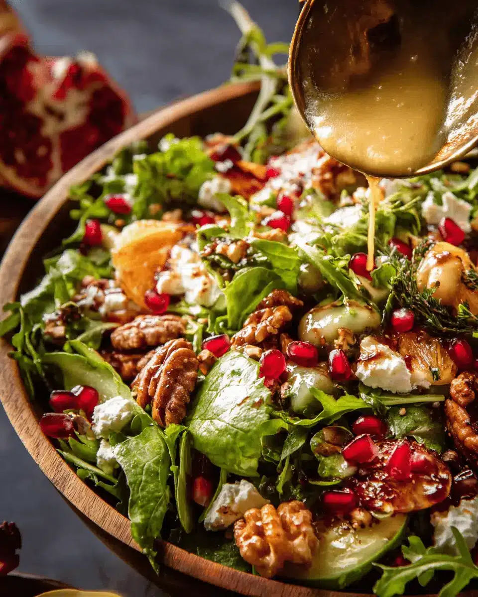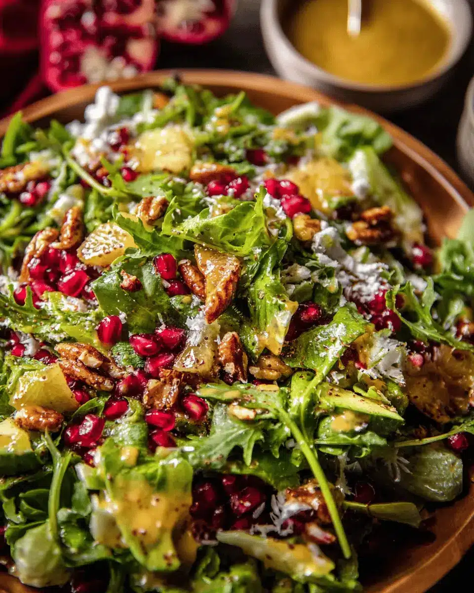Imagine walking into a holiday gathering with a dish that turns heads and tastes divine. This salad is packed to the brim with seasonal flavors, from crunchy walnuts and sweet pomegranate arils to creamy avocado and tart apples. The honey mustard dressing ties it all together with a delightful tang. Plus, you’ll impress your friends with your culinary flair without the stress!
