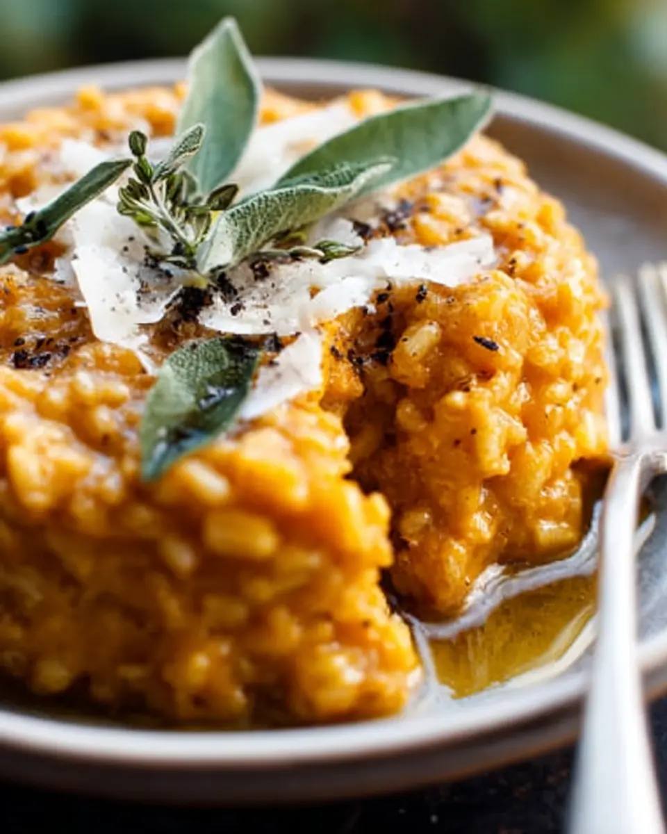 And there you have it—a delicious, creamy baked pumpkin risotto. No constant stirring required, just pure comfort in a bowl! Enjoy your meal!