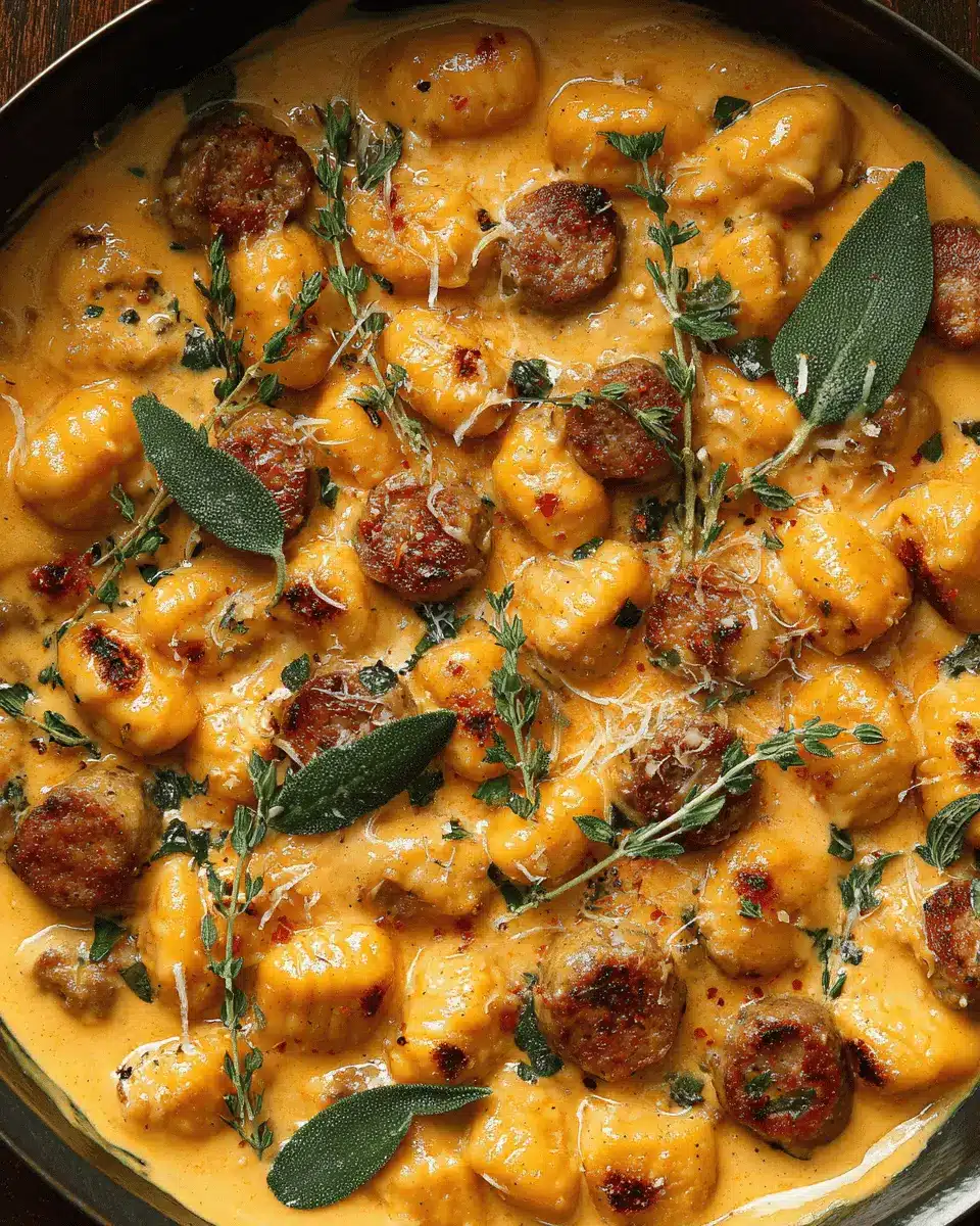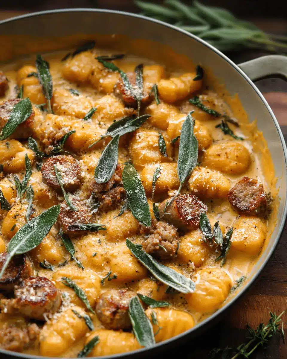 Creamy Butternut Squash Gnocchi with Sausage, Thyme, and Sage