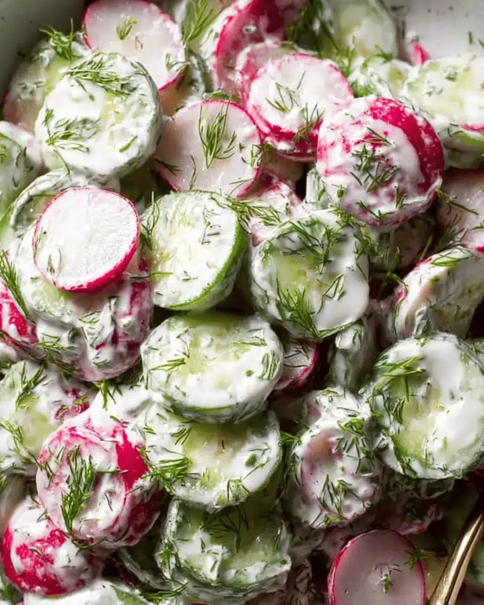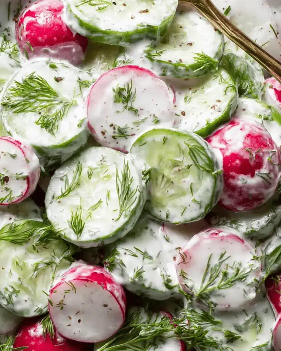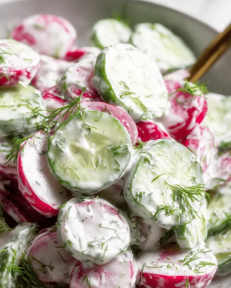 Cucumber Radish Salad w/ Yogurt Dill Dressing