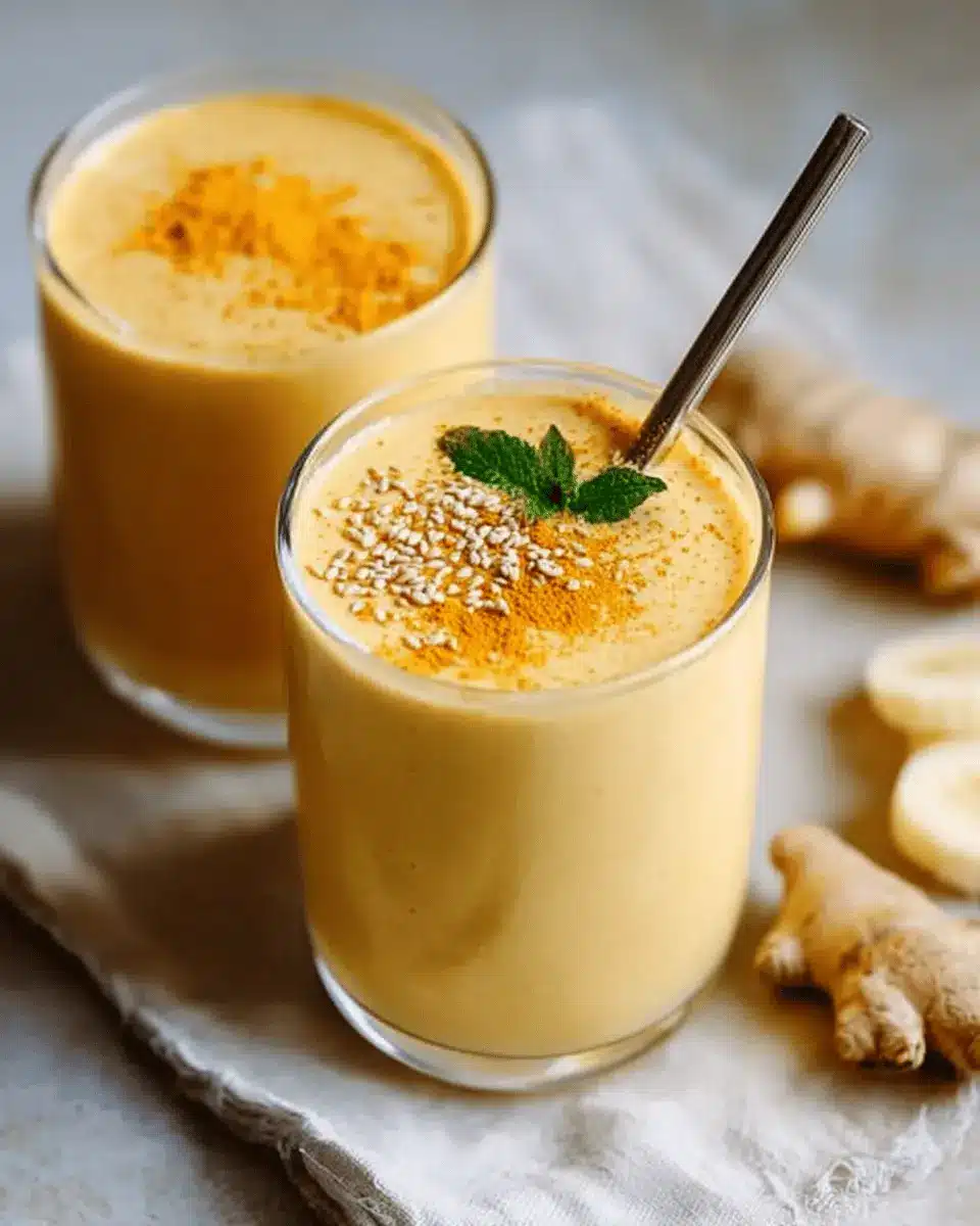 To make your easy banana ginger turmeric smoothie more substantial, consider adding ingredients like protein powder, chia seeds, or Greek yogurt. Adding a scoop of protein not only enhances the creaminess but also keeps you satisfied longer after your meal. For a heartier and more satisfying drink, a small handful of spinach can also be included without changing the flavor.