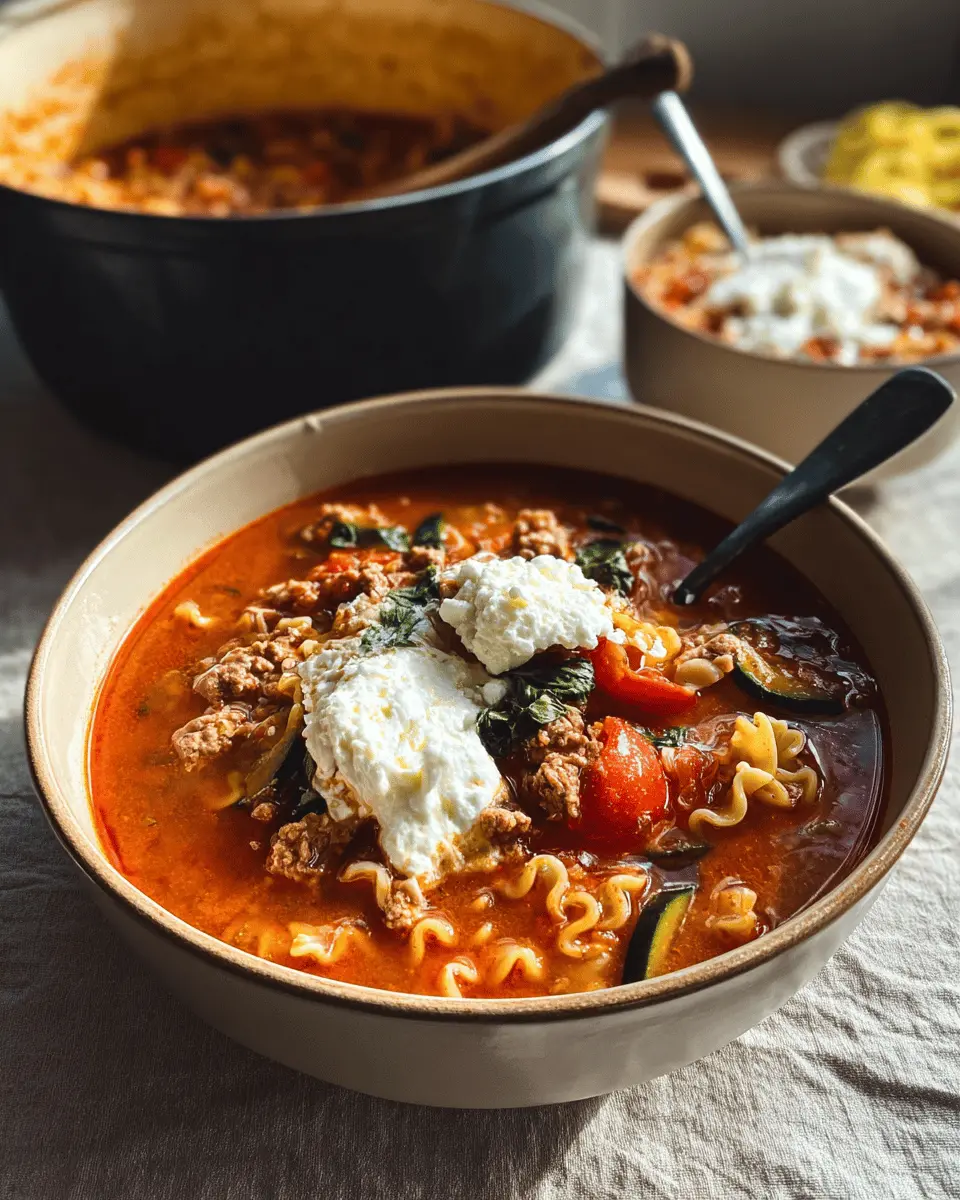 Making easy high-protein one pot lasagna soup is a delightful experience that can turn your weeknight dinner into something special without all the fuss of traditional lasagna. Follow these simple steps to create a comforting, hearty meal in just one pot!
