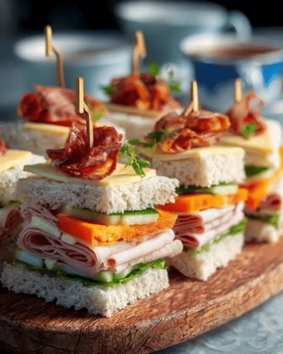Presentation can elevate your easy tea club sandwiches from simple to stunning. Arrange them on a tiered serving platter or tray for a classic tea party look. Garnish with fresh herbs like dill or basil to add color and aroma, or place individual sandwiches in colorful cupcake liners for a fun pop. For an added touch, cut the sandwiches into fun shapes using cookie cutters—perfect for impressing guests or making it a delightful treat for kids!