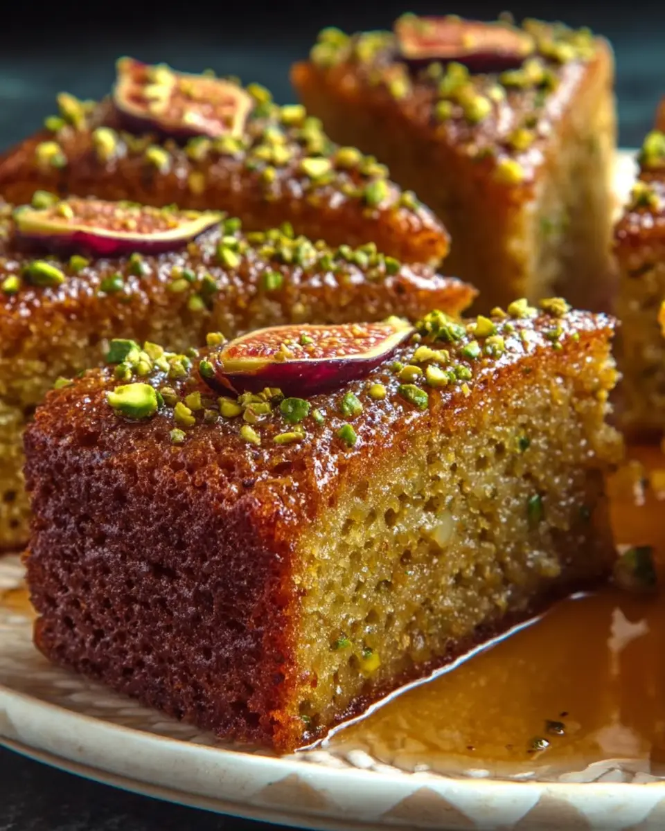 Crafting this Fig and Pistachio Semolina Cake Recipe makes for a delightful blend of textures and flavors. The soft, moist cake, infused with a fragrant syrup, will impress your friends and family. Don't forget to share your baking adventure or variations on this recipe—it's all about enjoying the process!