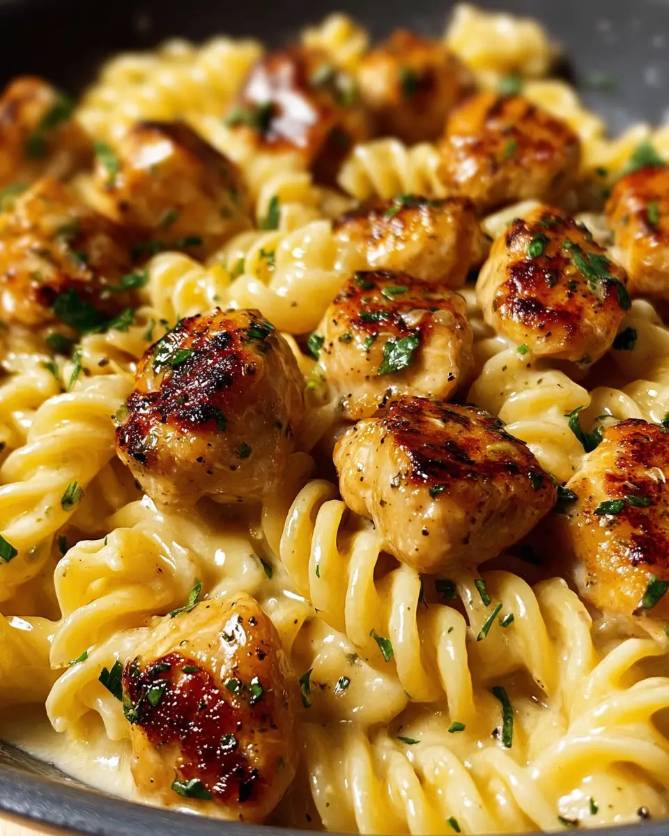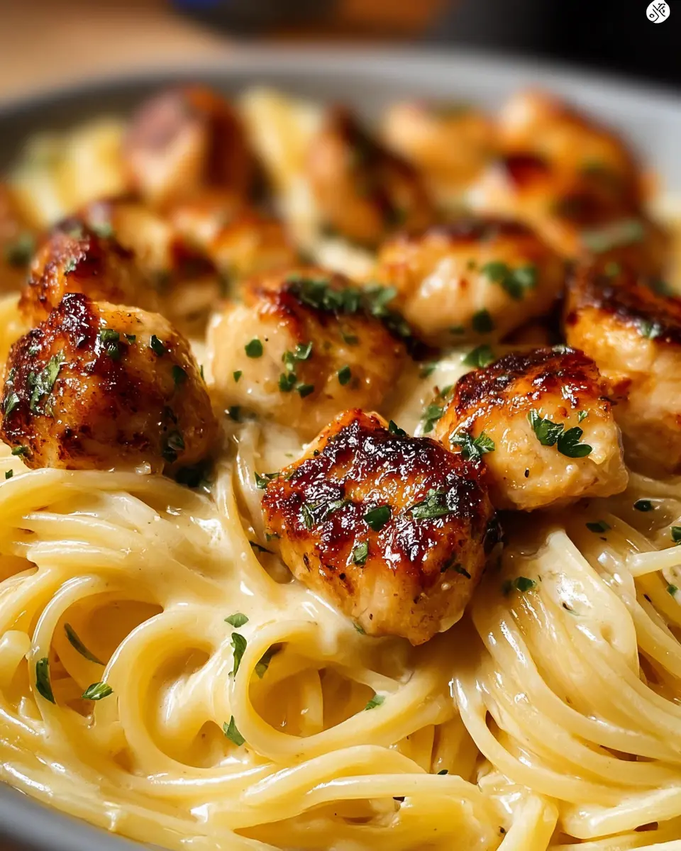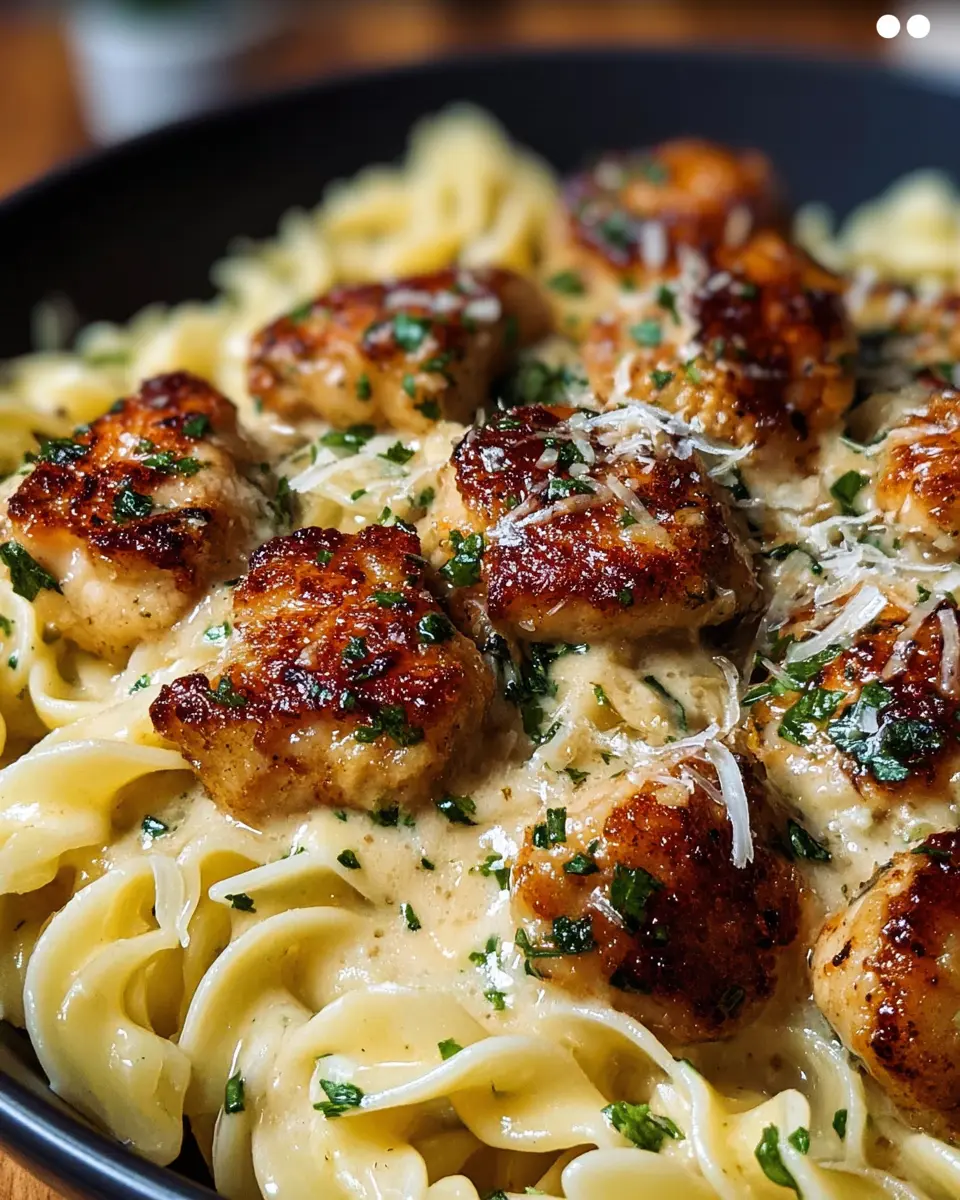 Garlic Butter Chicken Bites with Creamy Parmesan Pasta