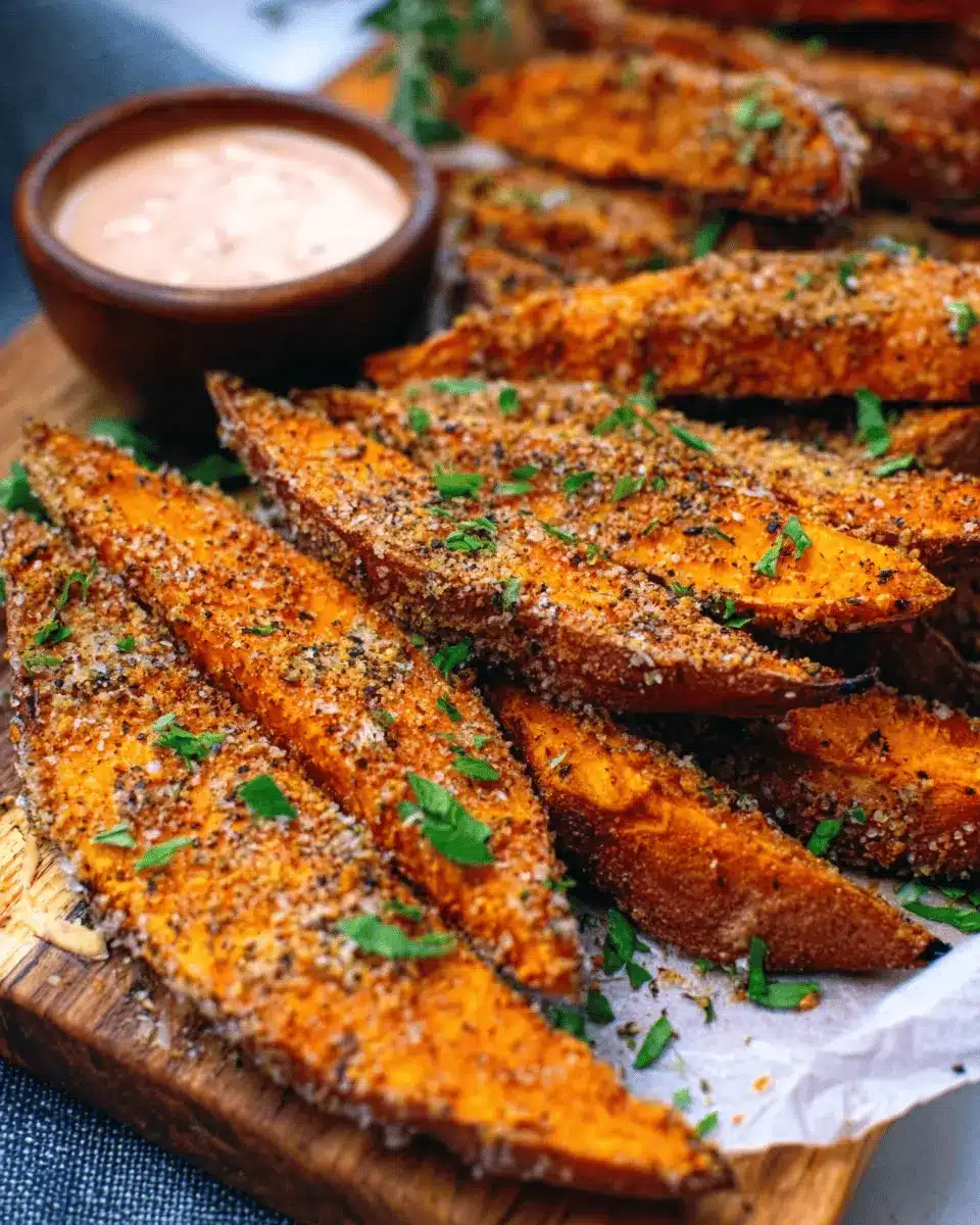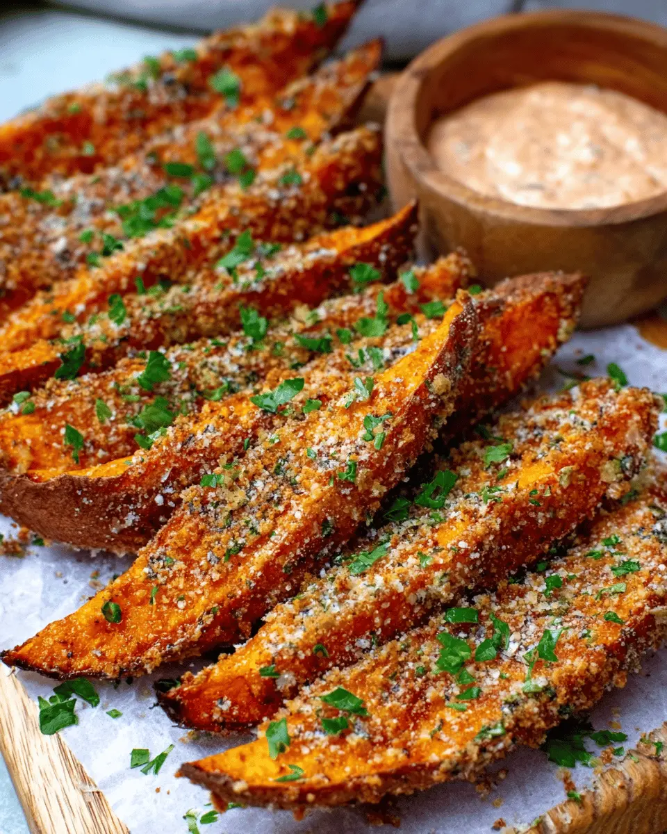 Herb-Infused Garlic Parmesan Sweet Potato Wedges