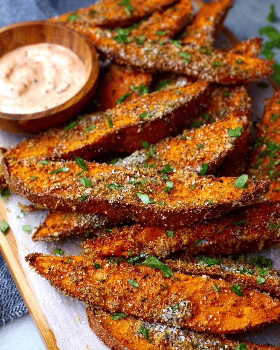 Eggs: Use 3 large eggs, beaten. The egg wash is vital—it helps the Parmesan adhere to the sweet potato wedges and adds to the flavor.