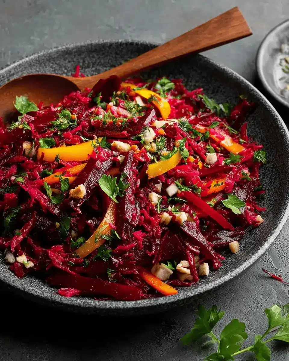 Get ready to brighten your table! This grated beet salad recipe has a preparation time of just 15 minutes. It’s a quick win for anyone looking to whip up a healthy side without spending hours in the kitchen.
