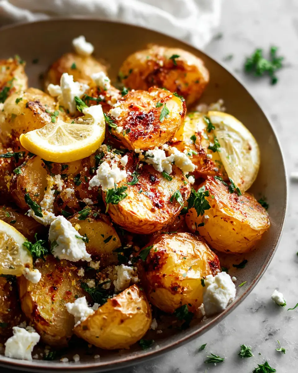 Feta is fantastic, but don't hesitate to mix it up! Try using tangy goat cheese or creamy ricotta for a change. If you're looking for lower-fat options, cottage cheese can provide a similar texture, while vegan cheese would work beautifully for a plant-based twist. The key is to complement the lemony zing with cheese that can hold its own against the rich, roasted potatoes—so get creative!