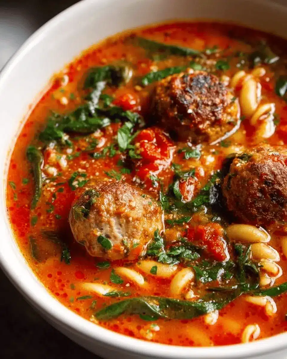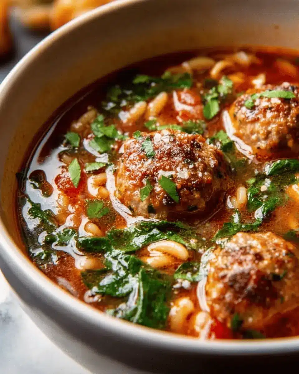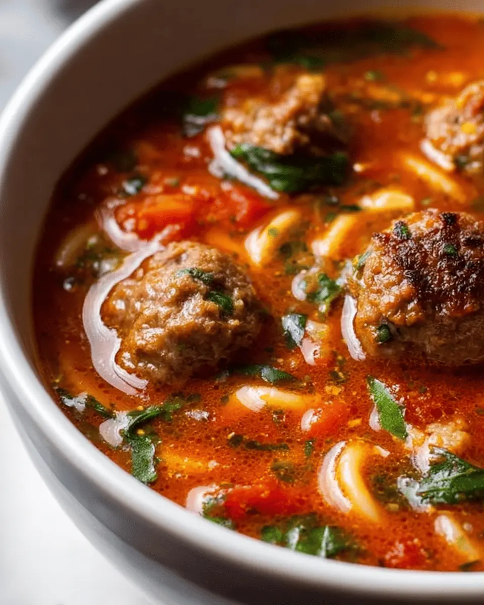 In conclusion, Italian Meatball Soup is not just a dish; it’s a comforting bowl of joy perfect for any occasion. With its rich flavors and hearty ingredients, this recipe will surely become a family favorite. Give it a try; you might just find it warms your soul!