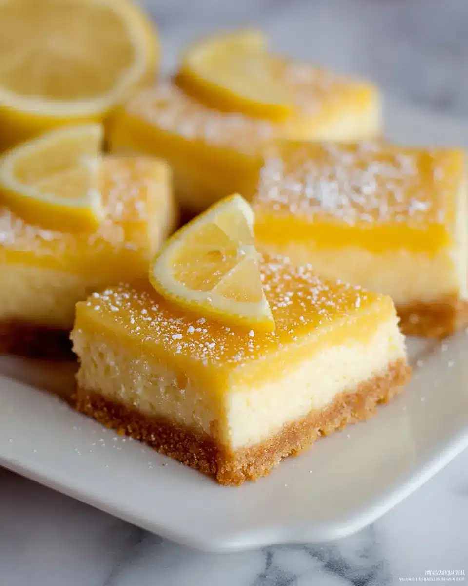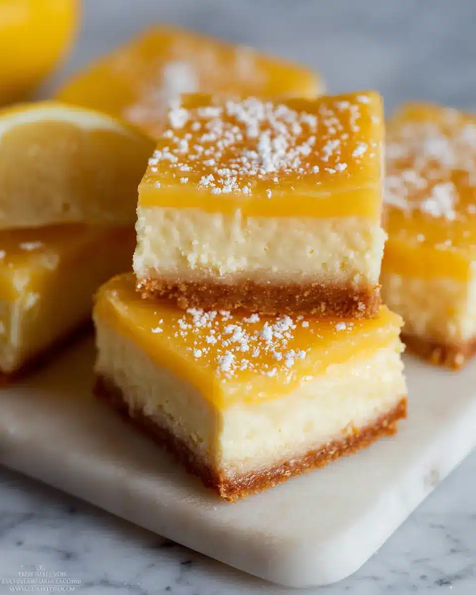 Elevate your Lemon Cheesecake Bars by presenting them on a vibrant serving platter or a rustic wooden board. Dust the top with a light sprinkling of powdered sugar for a touch of elegance. Garnish with fresh mint leaves or thin lemon slices for a pop of color. For special occasions, consider adding a few berries—like raspberries or blueberries—around the bars to create a delightful contrast.