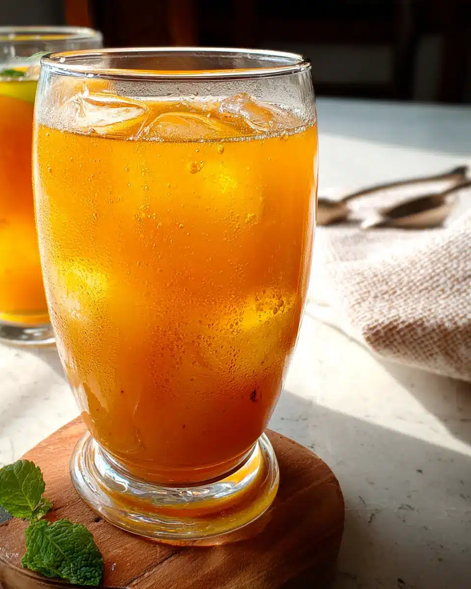 Finally, grab a sieve and strain the mixture into a pitcher. This will ensure a smooth texture—perfect for sipping! Now, fill tall glasses with ice cubes and pour in the mango iced tea. To make it even more visually appealing, garnish with lime slices and mint leaves. It’s not just a drink; it’s an experience! The vibrant colors and refreshing scents will surely impress anyone who tries it.