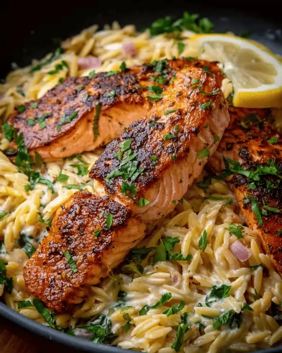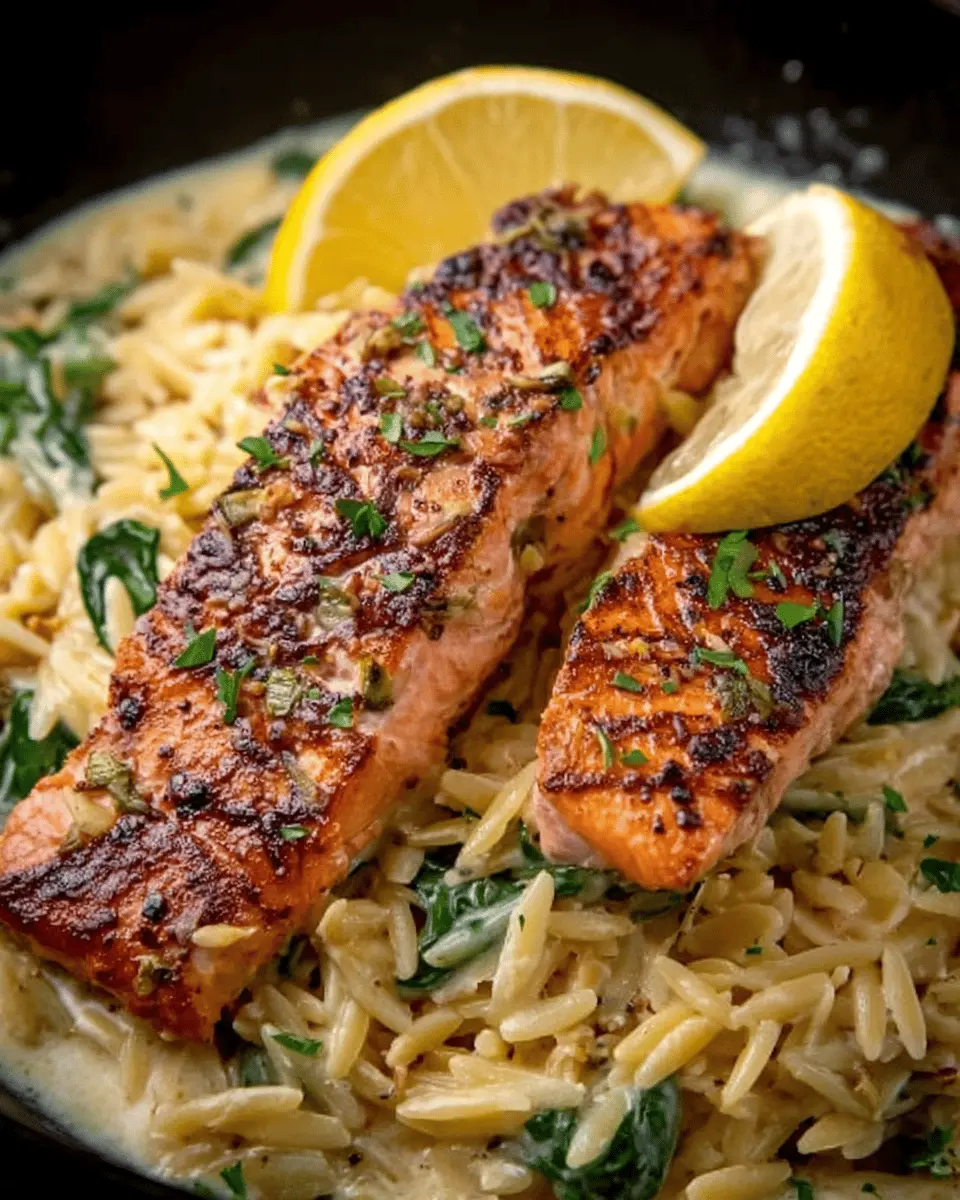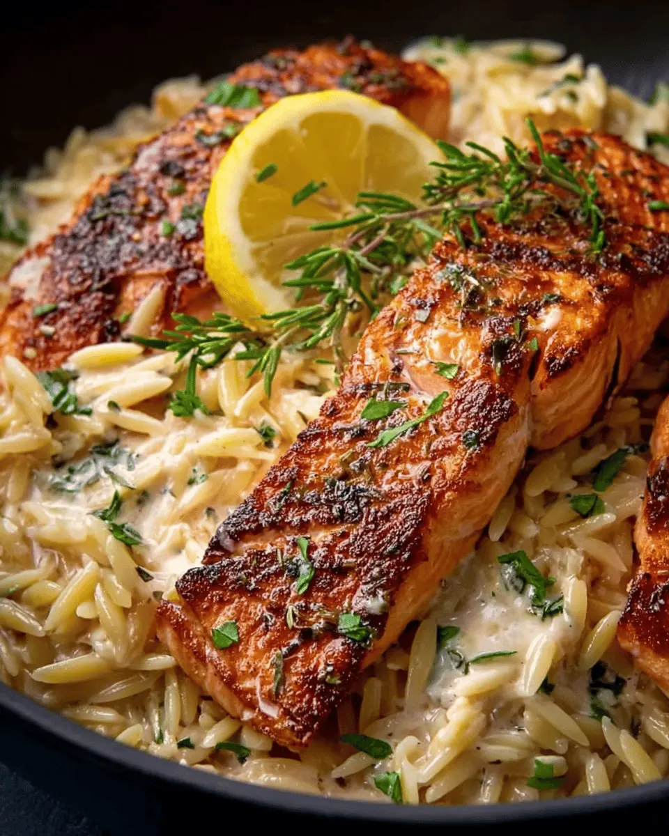 Pan-Fried Salmon with Creamy Lemon Orzo