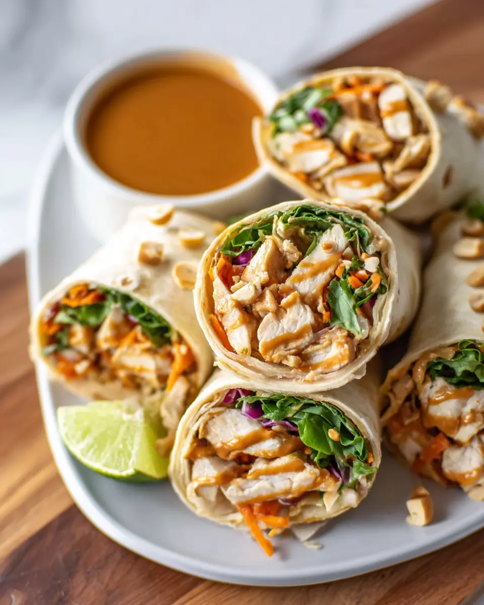 For a delightful vegetarian option, simply replace the chicken with marinated tofu or grilled tempeh. Toss in extra veggies like cucumber and bell peppers to enhance flavor and crunch. These vegetarian peanut wraps are not only healthy but also overflowing with delightful textures and flavors, making them a satisfying choice for any meal.