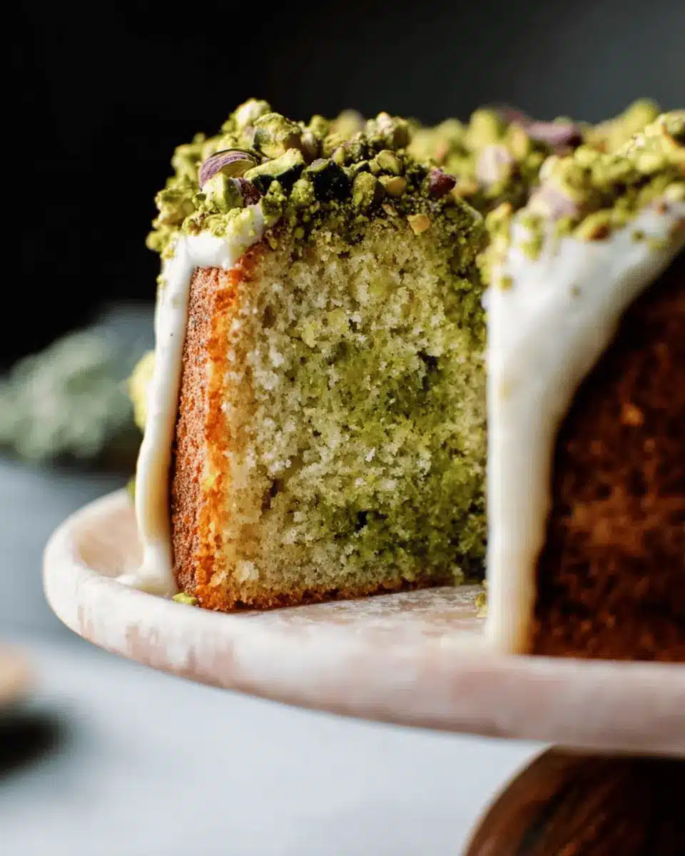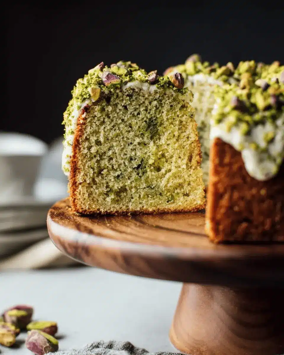 Storing your leftover pistachio cake is simple! Wrap it tightly in plastic wrap or place it in an airtight container, and store it in the refrigerator. It should stay fresh for about five days. If you want to keep it longer, consider freezing individual slices—just make sure to wrap them well to prevent freezer burn!