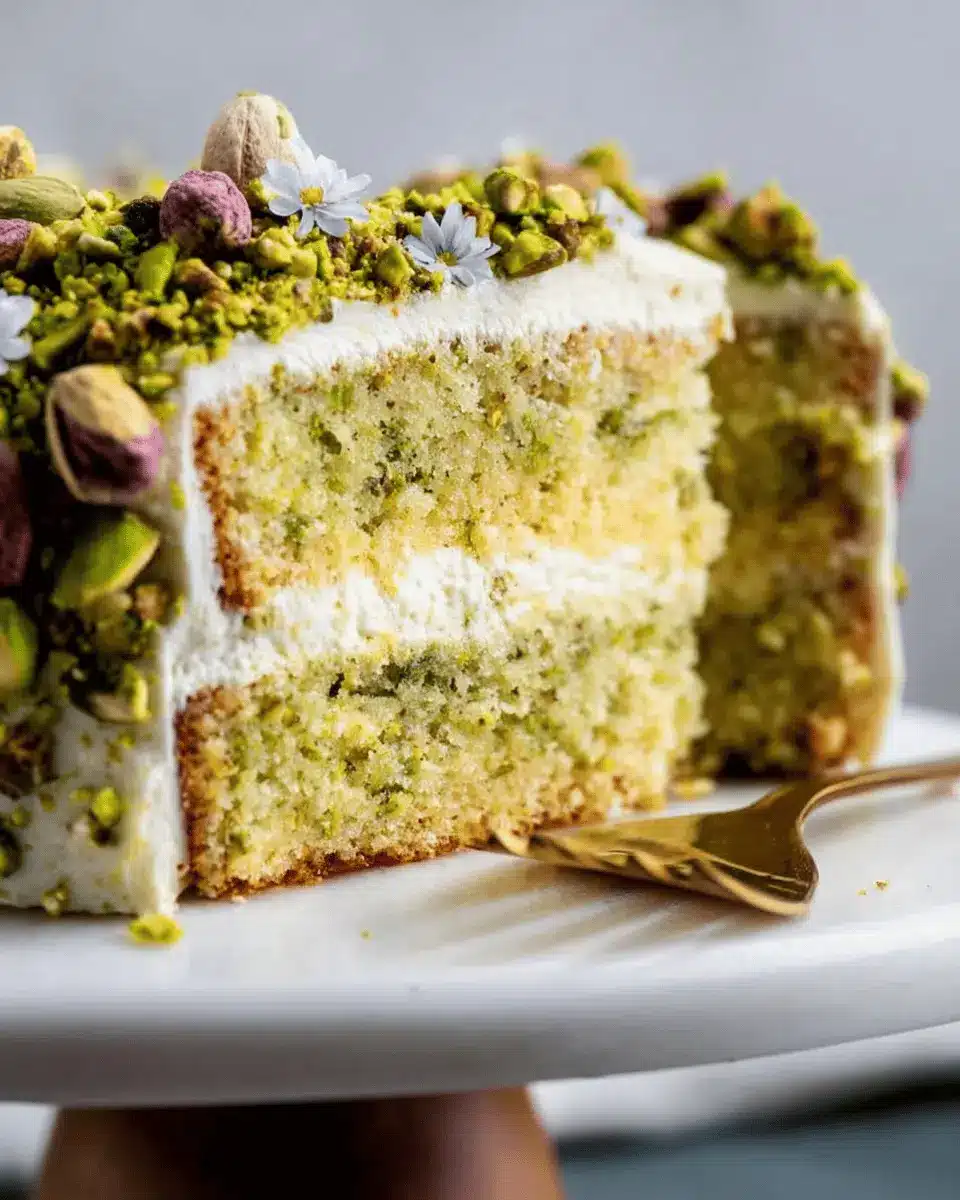 You’ll love this cake if you are looking to impress your friends or bring a touch of flair to your dessert table. It’s particularly perfect for celebrations or casual gatherings, as it strikes the right balance between elegance and warmth. Not only is this pistachio cake visually stunning with its earthy green tones, but it also provides a taste experience that is truly unforgettable.