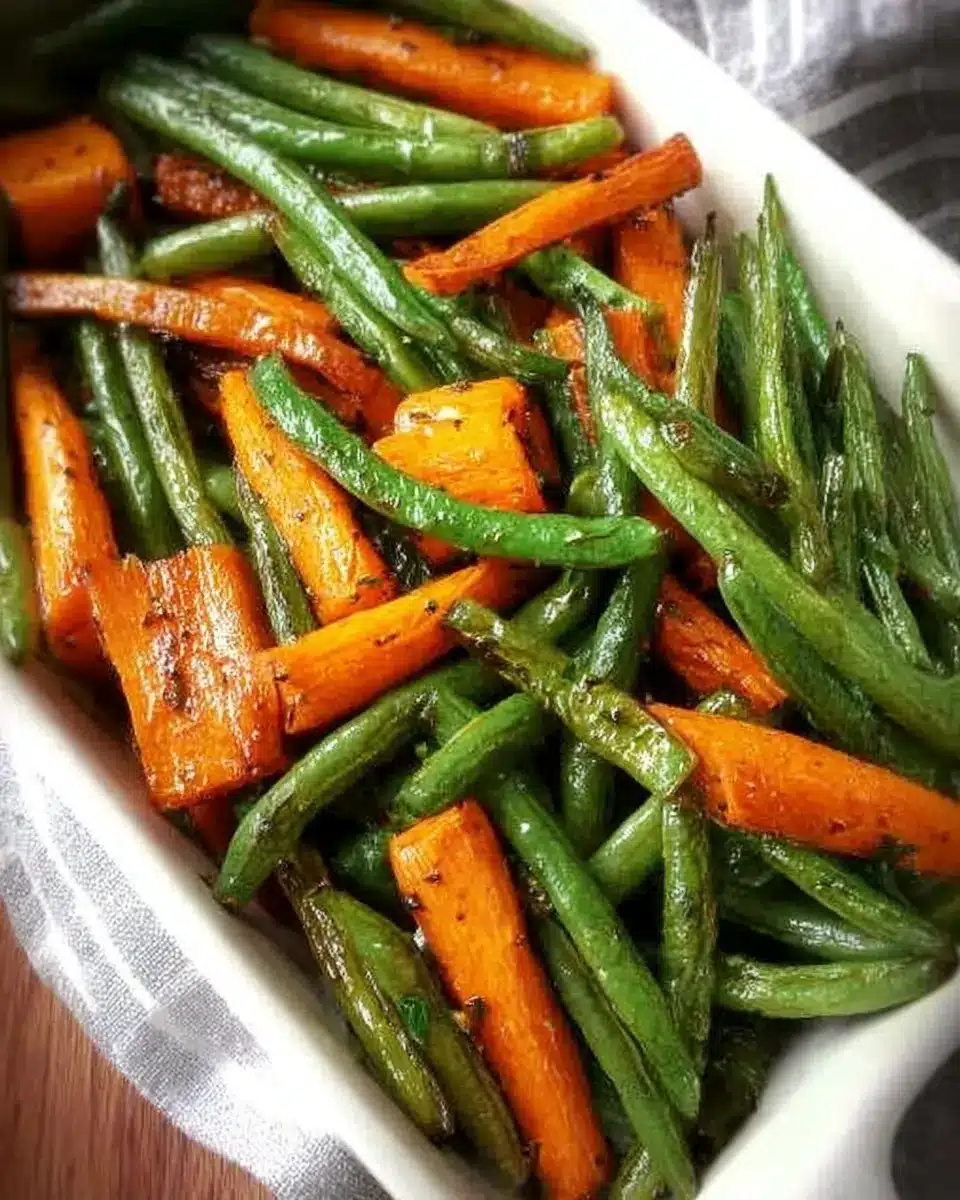 Roasted green beans and carrots are incredibly versatile and can complement a wide array of main courses. Whether you’re preparing chicken, fish, or even a hearty vegetarian dish, these colorful veggies add a beautiful touch and a boost of nutrients—rich in vitamins A and C, and packed with fiber to support a healthy lifestyle.