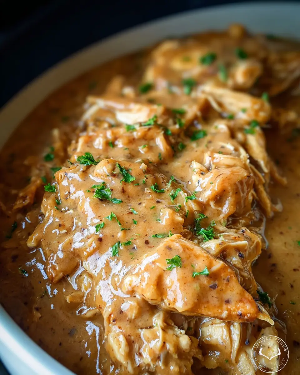 Once your chicken is perfectly cooked, let it rest for about 5 minutes before shredding. Use two forks to pull the chicken apart into bite-sized pieces. For added creaminess, stir in ½ cup of sour cream about 30 minutes before serving. This final touch elevates your dish, providing a smooth texture that pairs beautifully with the gravy.