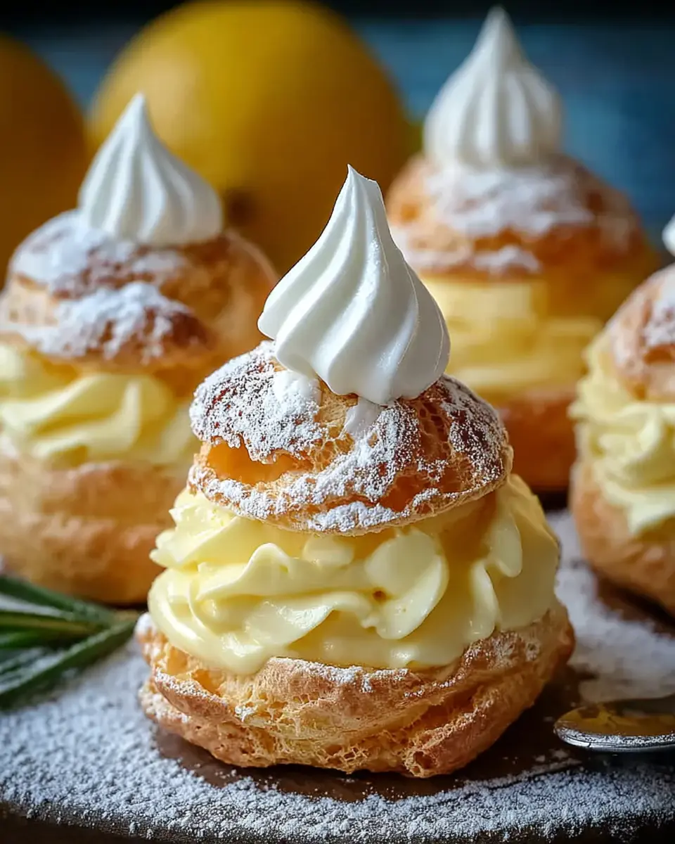 - Fill the Puffs: Use a piping bag to fill each cooled choux pastry with lemon cream filling.