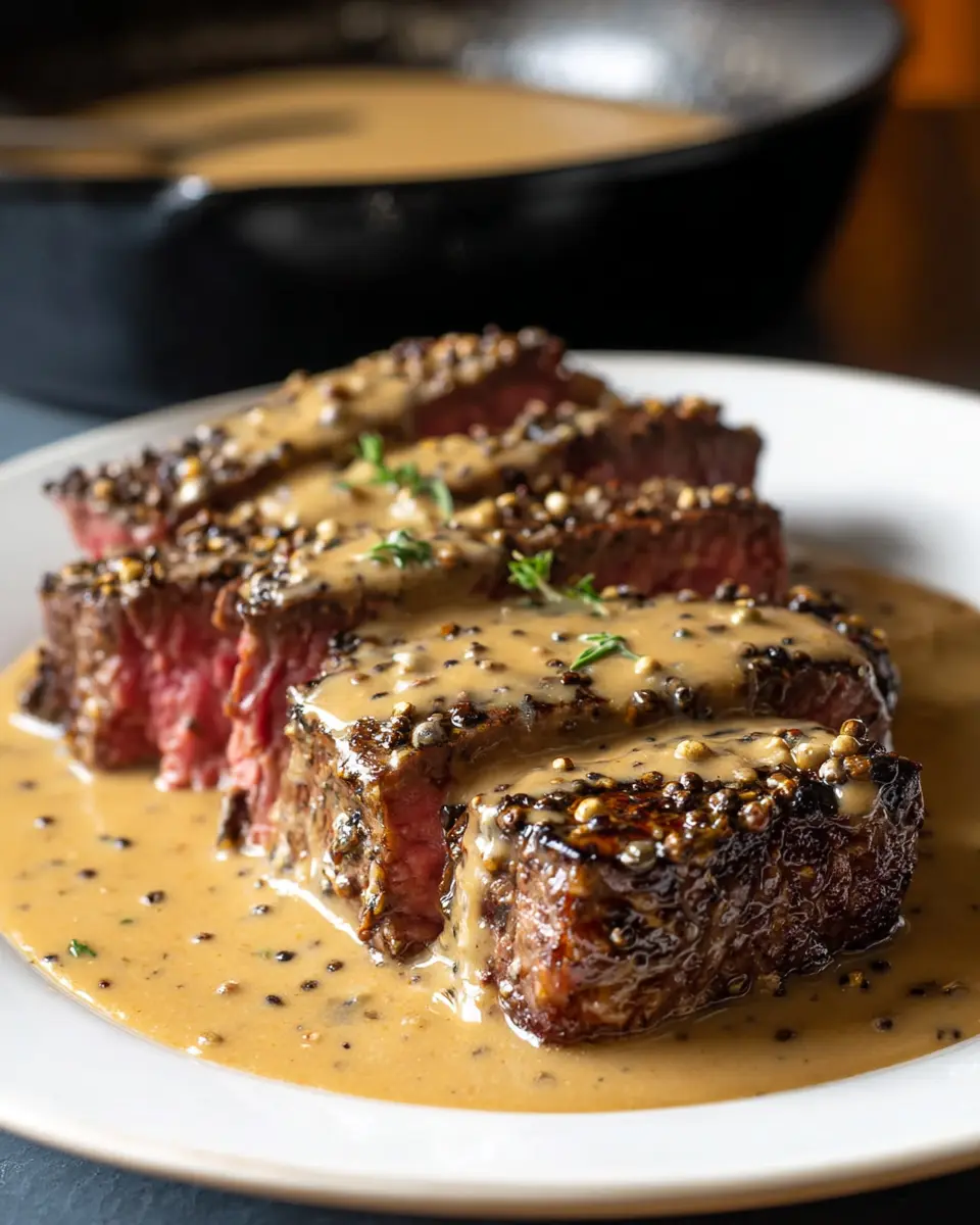 Steak au Poivre Recipe with Cognac Cream Sauce