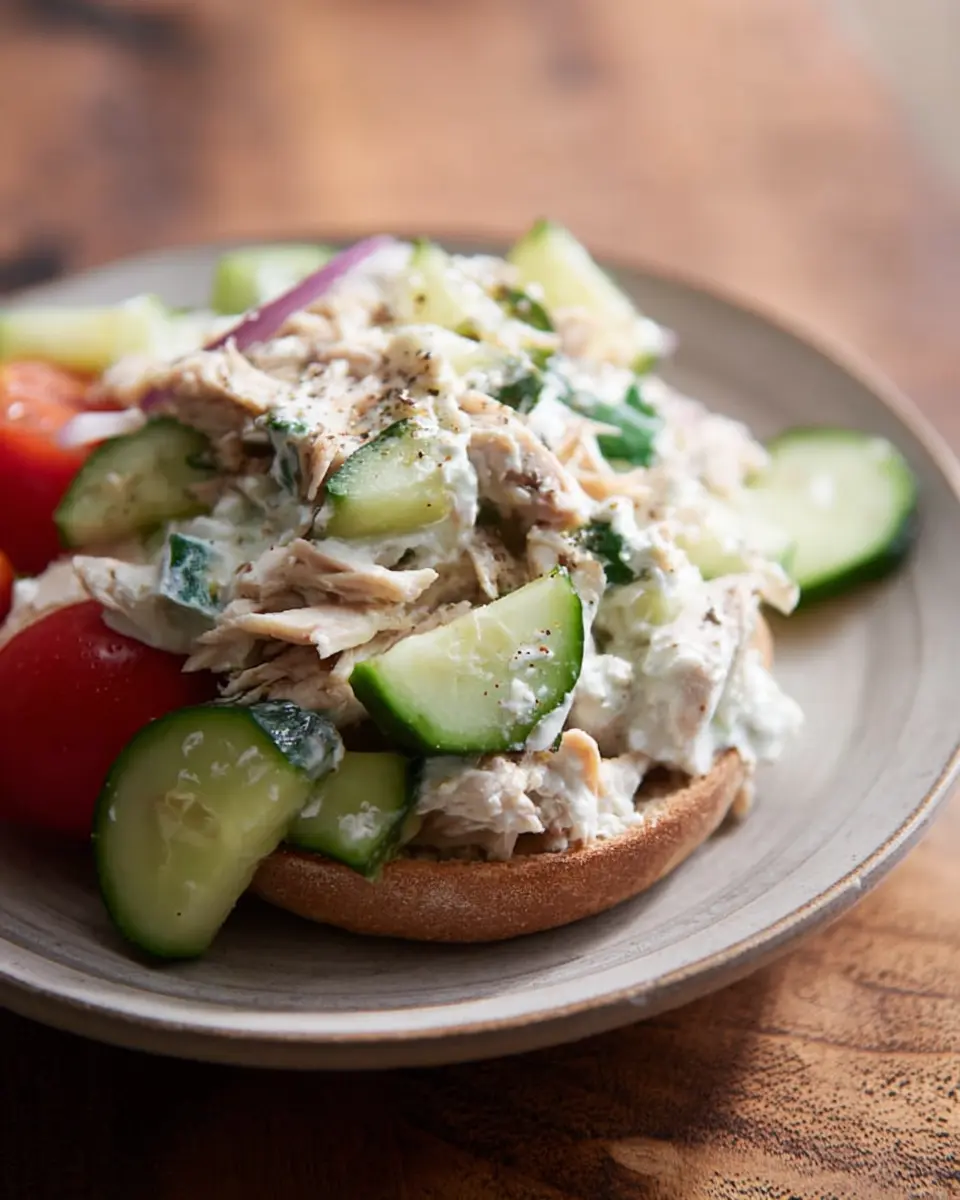 Your Tzatziki Chicken Salad is now ready to shine! You can serve it over a bed of fresh greens or even inside a sandwich for a heartier option. For added enjoyment, sprinkle some feta cheese or additional cucumber and herbs on top. Not only does this make for an appealing presentation, but it also enhances the flavor profile. Enjoy your delicious creation with friends or as a satisfying solo meal—you deserve it!