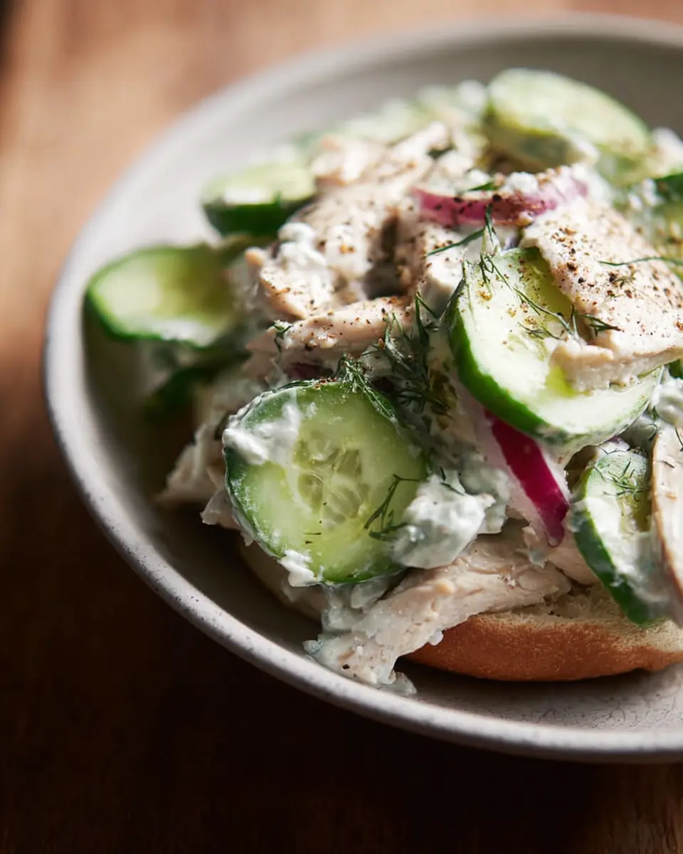 In closing, this Tzatziki Chicken Salad Recipe is an ideal choice for a refreshing, healthy meal. With its creamy Greek yogurt base and vibrant herbs, it's quick to prepare, making it perfect for busy lunch breaks. Try customizing it with your favorite toppings or enjoying it on a bed of greens!