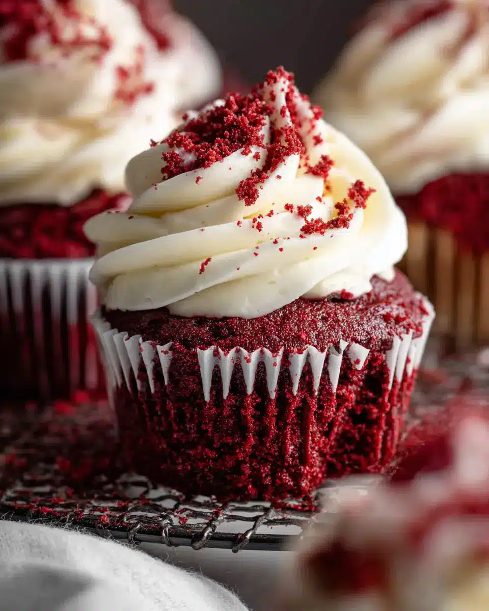 Elevate your Vegan Red Velvet Cupcakes by presenting them on a decorative cake stand or platter adorned with fresh berries. You can also sprinkle a dusting of powdered sugar or cocoa powder on top for a sophisticated touch. For a fun twist, try serving them in mini mason jars, layering crumbled cupcakes with frosting for an eye-catching dessert.